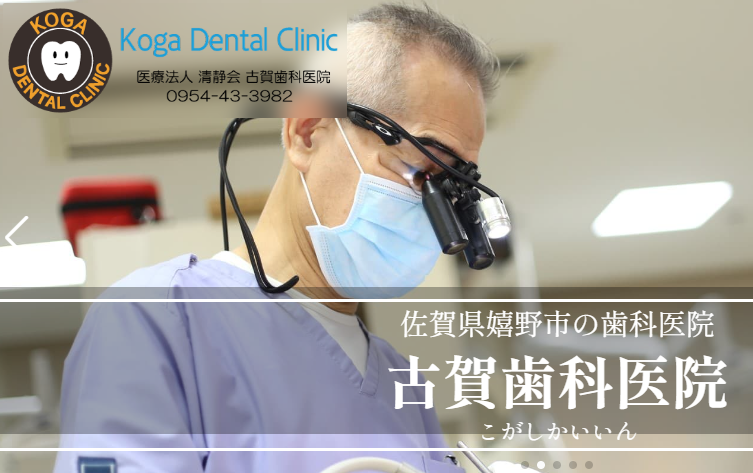 古賀歯科医院は、嬉野温泉駅温泉口から徒歩16分のところにあります。診療科目は、一般治療、小児治療、歯周病治療、予防歯科、インプラント、口腔外科、矯正歯科、審美治療、ホワイトニング、訪問診療となっています。