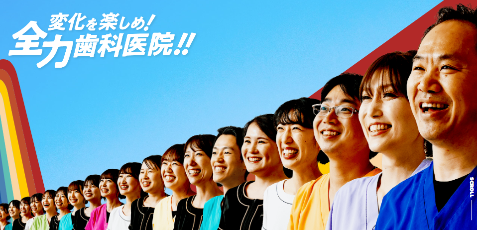 かがやき歯科は、40名にも及ぶサポートスタッフ、スマイルクリエイター(歯科助手、受付、TC)、管理栄養士、歯科技工士、歯科衛生士、歯科医師の多くの他職種の人たちが、それぞれの立場で患者様のためにできることを力を合わせて協働するワンチームができていく過程にあります。