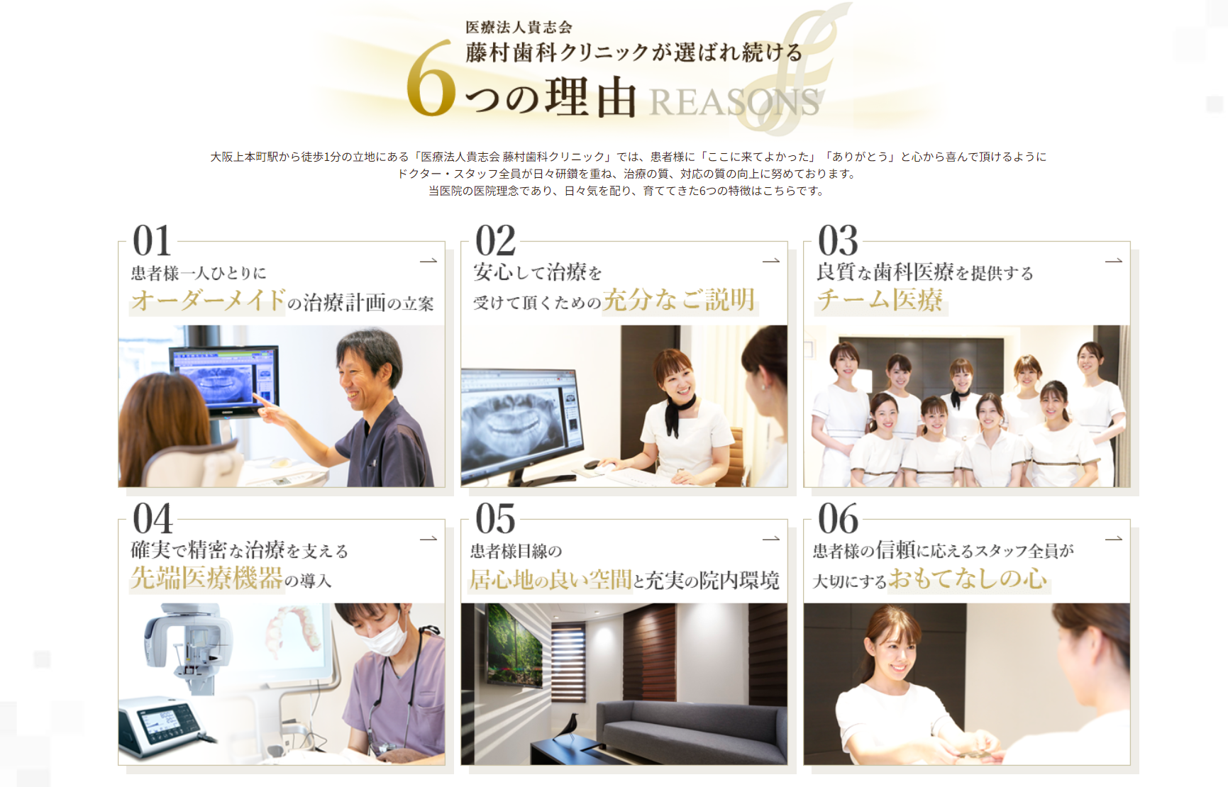 藤村歯科クリニックは、近鉄大阪線大阪上本町駅 14番出口から徒歩1分のところにあります。保険治療は、むし歯・根管治療、歯周病、小児歯科、予防歯科、口腔外科、入れ歯、マタニティ歯科となっています。
