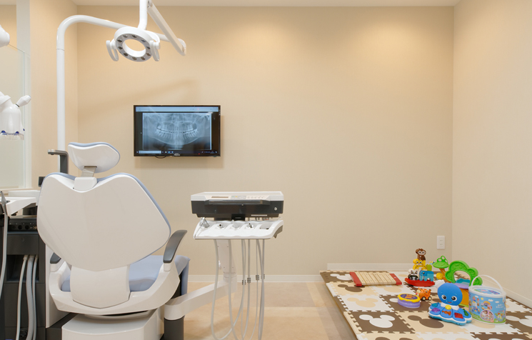 院内には、お子様連れの親御様にも配慮し、診療中でも目の届く場所にキッズスペースを設けています。また、デジタルレントゲンを導入し、通常の1/10の被ばく量に抑えるなど、患者様の安全にも十分な注意を払っているそうです。