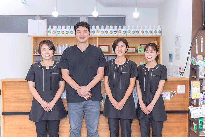 丁寧な対応と笑顔でお迎えする受付、雑誌を取り揃えた待合室、おもちゃや絵本のあるキッズルーム、清潔で落ち着いた雰囲気の診療室、プライバシーを確保したカウンセリングルームなど、患者様に快適にお過ごしいただけるよう配慮しています。 歯科医師4名、歯科衛生士3名、歯科助手2名のスタッフ一同、患者様の健康的で豊かな人生のサポートに努めています。
