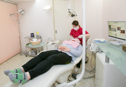 院内設備も充実しており、リラックスできる空間づくりに努めています。エレベーター(車椅子対応)完備で、院内用車椅子も用意されているため、お年寄りの方や足の不自由な方も安心して通院できます。お子様連れの親御様に嬉しいキッズルームも完備され、治療を頑張ったお子様へのプレゼントも用意されています。さらに、盲導犬の同伴も可能なため、より多くの方々が利用しやすい環境です。