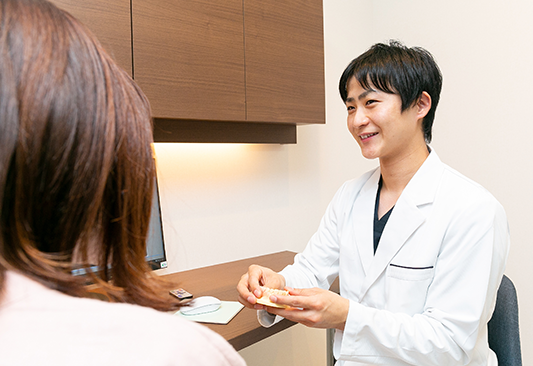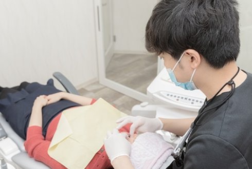 治療の特長として、最先端の技術と設備の導入に力を入れています。とりわけ注目すべきは、歯科用マイクロスコープを活用した精密治療です。肉眼の20倍もの拡大視野により、通常では見落としがちな細部まで綿密に観察でき、より正確な診断と高度な治療を実現しています。また、よつばデンタルグループの歯科医師との定期的な技術交流や、複数の専門家による「セカンドオピニオン」制度を取り入れ、患者様個々に最適な治療プランを提案しているのも魅力です。さらに、痛みを抑えた治療を心がけ、笑気麻酔も取り入れているため、お子様から大人の方まで安心して診療を受けられる環境が整っています。