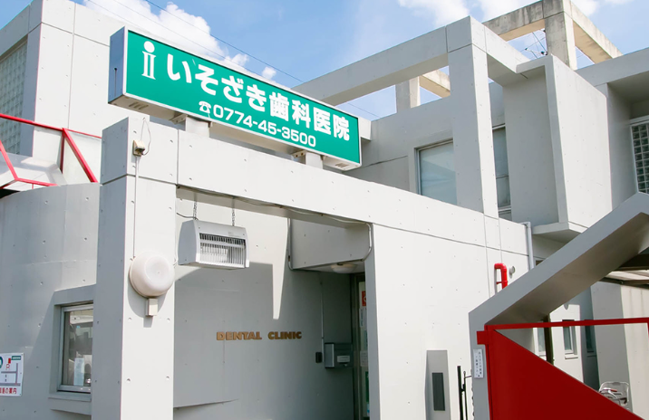 いそざき歯科医院は、近鉄 大久保駅から車で7分、バス「佐山」停留所から徒歩1分の場所に位置しています。駐車場は医院の裏手にあり、4台分の駐車スペースが用意されているため、お車での通院も安心です。平日は20時まで診療しているので、帰りが遅くなる会社員の方でも安心ですね。