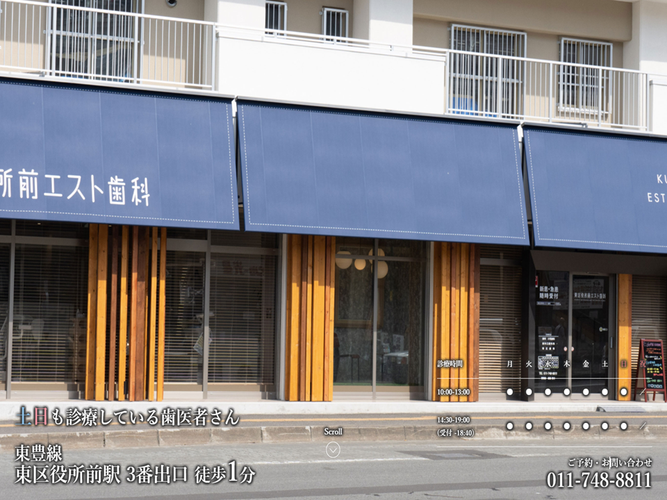 東区役所前エスト歯科は東区役所前駅、3番出口より徒歩1分の場所にあり、日曜日も診察可能です。赤ちゃんから高齢者まで、幅広い年齢層の患者様に対応する総合歯科医院です。