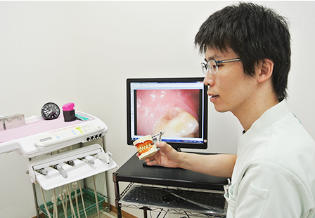 こちらの医院は、予防中心の診療方針で、患者様の自歯を大切にした治療を心がけています。治療に際しては、レントゲン検査や口腔内カメラでの撮影結果をもとに、丁寧なカウンセリングを実施。お子様の診療では、歯医者が苦手な場合でも安心して通院できるよう、診察台に座る練習から治療器具の紹介まで、段階を踏んだトレーニングを行っています。