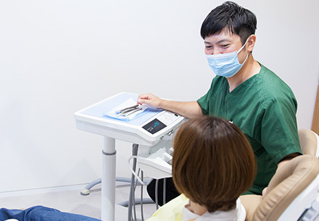 こちらの医院では、「歯医者は怖い」「治療が痛い」というイメージを払拭するため、丁寧なコミュニケーションを通じた患者様本位の診療を心がけています。問診やカウンセリングでは、患者様一人一人のご要望をしっかりと理解し、それぞれの状況に合わせた治療プランを提案。麻酔が必要な場合も、痛みの少ない部位を見極めて施術するなど、できる限り痛みを抑えた治療を実践しています。