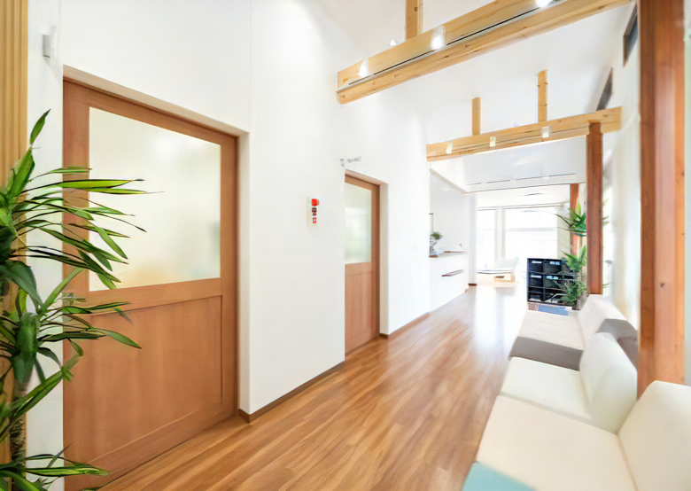 患者様が安心して通えるよう配慮されたクリニックです。 院内はバリアフリー構造を採用しており、高齢者や車椅子を利用する方にも優しい設計です。待合室にはゆったりと座れるソファを設置し、キッズスペースには絵本や雑誌を用意するなど、小さなお子様連れの方にも快適に過ごしていただけます。
