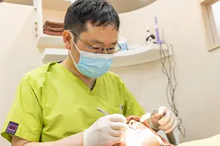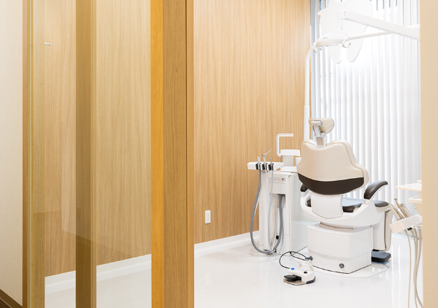 診療室は個室もあり、親御様とお子様が一緒に治療を受けられる空間も用意しています。治療では、身体への負担を考えた歯科用CTや精密治療を可能にするマイクロスコープなど、最新機器を活用。さらに、院内感染予防にも徹底的に取り組み、治療器具は患者様ごとの滅菌処理、備品類は使い捨てを基本とすることで、清潔で安心できる環境を実現しています。