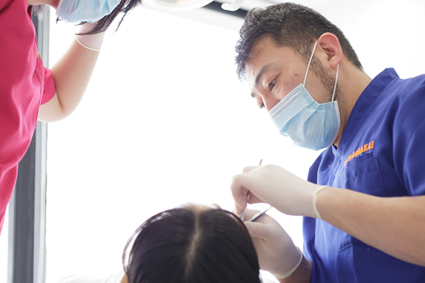 歯周病治療においては、歯科医師と歯科衛生士が連携してレントゲン撮影や、歯周ポケットの測定を基に進行度を確認しており、患者様の状況に合わせた治療を行います。 歯周病は、初期の歯肉炎から始まり、自覚症状がほとんどないまま進行していきます。 軽度の歯周病とは、歯周ポケットに歯垢が溜まり、歯肉が赤く腫れて炎症を起こしている状態です。 この段階では、歯磨き時に出血が見られることもあります。 治療では、スケーラーと呼ばれる器具を使って歯に付着した歯石を取り除き、お家でのセルフケア方法もお伝えします。 中度の歯周病は、歯周ポケットがさらに深くなり、強い口臭や出血が見られるほか、歯周病菌の影響で顎の骨が徐々に溶け、歯がぐらつくことがあります。 この段階の治療では、キュレットと呼ばれる専用のスケーラーを用いて、歯周ポケットの奥深くに付着した歯石をしっかりと除去していきます。 また、歯の表面を滑らかに仕上げることで、歯石の再付着を予防します。