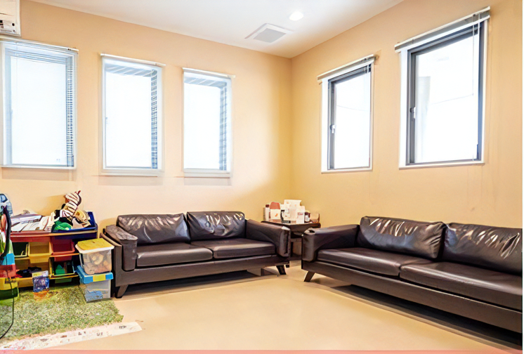 院内は天窓が設けられており、明るく開放感のある空間が広がっています。さらにバリアフリー設計を採用しているため、靴を脱ぐ必要がなく、靴のまま利用できる点も特徴です。また、診療室は個室仕様となっており、プライバシーがしっかりと守られています。