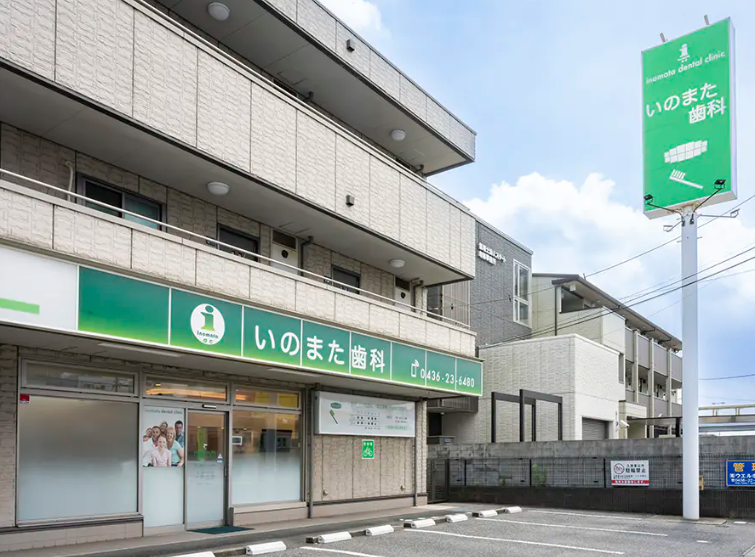 いのまた歯科は、JR五井駅 東口から徒歩1分と、駅からアクセスしやすい場所に医院を構えています。駐車場は4台分用意されているので、電車やお車での通院が便利です。