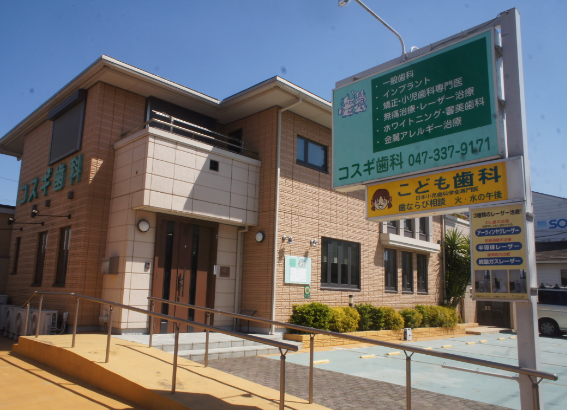 コスギ歯科は、JR船橋法典駅から南へ徒歩6分の場所に位置しています。駐車スペースは6台分完備しているため、お車での通院も安心です。