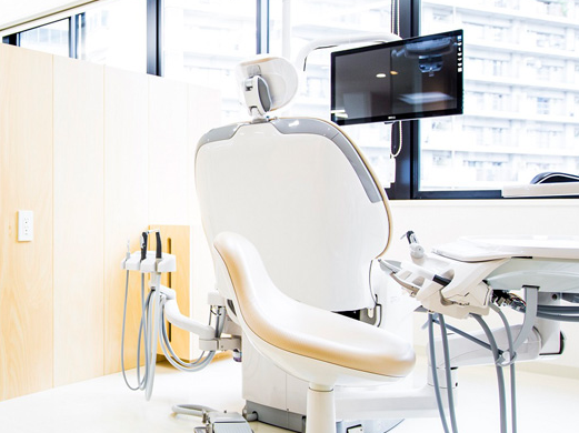 院内は治療エリアとメインテナンスエリアを分離し、目的に応じた最適な環境を提供。治療エリアは清潔感と解放感にあふれ、メインテナンスエリアは落ち着いたプライベート空間として完全個室で設計されています。診療室直結エレベーターの設置や、キッズルーム・おむつ交換台の完備により、車いすをご使用の方や小さなお子様連れの方も安心して通院できます。歯並びの改善からメインテナンスまで、トータルな歯科ケアを一貫して受けたい方はぜひご予約ください。