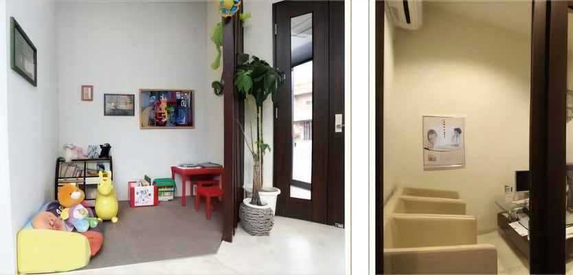 キッズルームを併設した診療室も備えています。保護者の方が治療中、お子様は同じ部屋で遊ぶことができるため安心です。DVDを見ることも可能で、お子様の好きなものを持ちこめます。