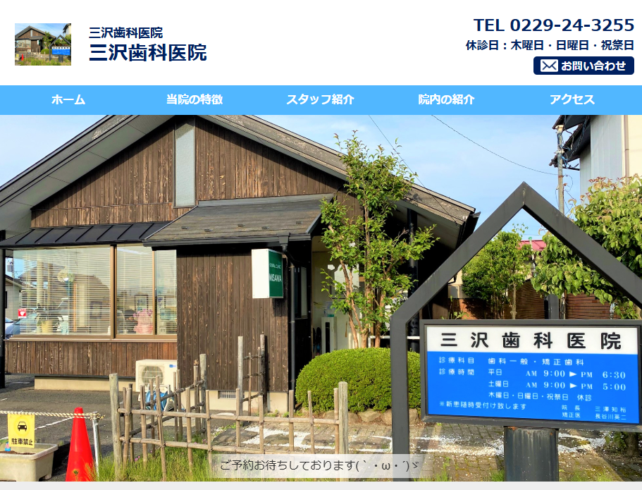 三沢歯科医院は、JR田尻駅から車で西へ20分、JR塚目駅から車で北東へ7分、バス「古川黎明中高」停留所から北へ徒歩5分の場所に医院を構えています。医院の敷地内に駐車場を完備しており、お車での通院も安心です。