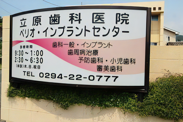 立原歯科医院は、常磐線日立駅より車で8分、小平会館入口バス停下車、徒歩1分です。一般歯科、小児歯科、インプラント治療、歯周病治療、審美歯科治療など幅広く対応しています。