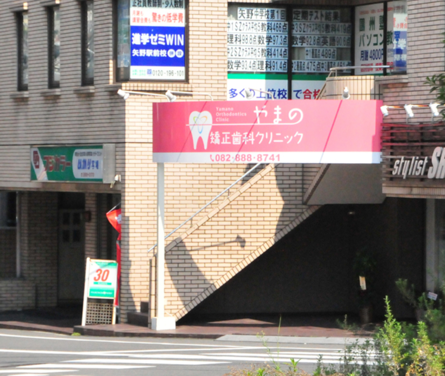 やまの矯正歯科クリニックは、広島市安芸区矢野西に位置し、JR呉線矢野駅から徒歩1分という好立地にあります。このため、電車でのアクセスが良好で、近隣の安芸区矢野、安芸郡坂町、海田町、熊野町をはじめ、広島市内や遠方からの患者様にも通いやすい環境が整っています。