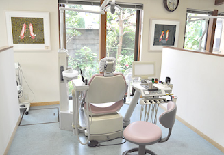 院内は庭の緑を眺められる落ち着いた診療室となっており、リラックスした雰囲気で治療を受けることができます。待合室も緊張を和らげるゆったりとした空間を演出し、快適な時間を過ごせるよう配慮。さらに、タバコのヤニやお茶の着色を除去できるエアフローなど、専門的な設備も整えています。