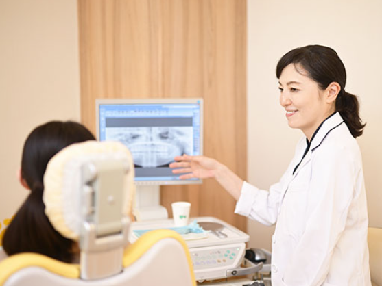 こちらの医院では、各分野の専門医(口腔外科・矯正歯科・インプラント)による、患者様一人ひとりに寄り添った丁寧な治療を受けられるのが特徴です。視覚的に分かりやすい説明はもちろん、痛みを最小限に抑えた優しい治療を心掛けているため、歯科医院が苦手な方でも安心して通院できるでしょう。女性歯科医師が常勤しており、予防や異常の早期発見・早期治療にも力を入れています。矯正治療は日本矯正歯科学会認定医が、口腔外科は日本口腔外科学会認定医が担当するため、専門性の高い治療が期待できます。
