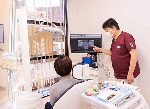 こちらの医院では、患者様との信頼関係を何よりも大切にし、丁寧なカウンセリングを通じて患者様の状況や要望をしっかりと把握することで、お一人おひとりに寄り添った治療を提供しているのが特徴です。院長は大学で口腔外科を学び、現在も鶴見大学歯学部の非常勤講師として勤務しているため、外科系の治療には特に自信を持っているとのこと。入院によるオペが必要な患者様には、鶴見大学歯学部附属病院をはじめとした近隣の大学病院や総合病院の歯科口腔外科を紹介し、休診日であれば院長自身がオペを担当することもあります。