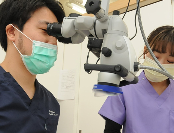 院内ではCT、マイクロスコープを導入することにより、さらなる精密治療が可能となっています。CTによって、従来のレントゲンでは分からなかった細部まで確認できるため、より正確な診断に基づいた治療が可能です。マイクロスコープは患部を拡大して見ることができるため、より精密な処置が可能となり、治療の質を高めます。