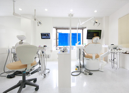 院内は、最新式の診療台、診療器具、設備を完備。レントゲンも備えているため、きめ細かい治療が可能です。全ての診療台が半個室となっており、プライバシーに配慮した落ち着きのある空間で治療を受けられます。