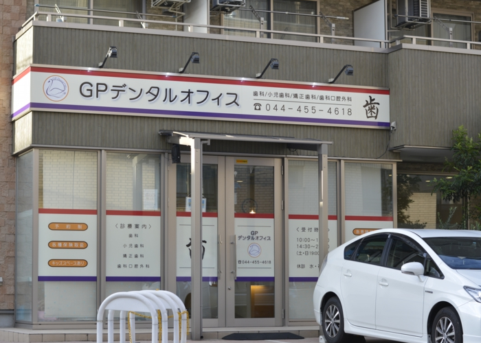 GPデンタルオフィスは、JR向ヶ丘遊園駅 北口から南西へ徒歩3分の場所にあるドリームライフ向ヶ丘遊園1階に入っています。医院前に2台分の駐車スペースと駐輪スペースがあるので、車や自転車、バイクでのアクセスも便利です。