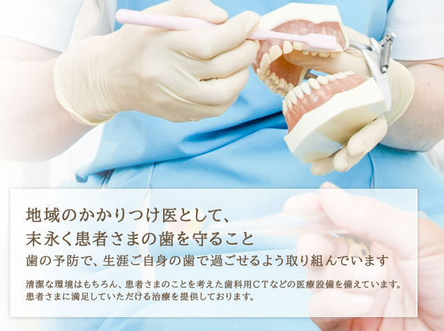 こちらの医院では、予防歯科を重視した診療を提供し、「治療をしなくて済むようにする」という理念を掲げています。母の代から地域に根差した診療所として、保険診療を基本に据えながら、患者様の状態に応じて最適な治療方法をご提案。痛みの除去や修復、入れ歯の制作はもちろんのこと、定期的なケアを通じて患者様ご自身の歯で美味しく食事ができる生活を長く維持できるようサポートしています。必要に応じて自費診療もご用意しており、より洗練された方法や優れた材料を使用した治療も可能です。