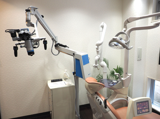 院内は清潔な環境を徹底し、車いすやベビーカーでもそのまま入れるバリアフリー設計となっています。診療室には海外から取り寄せた座り心地の良いチェアを設置し、快適な治療環境を実現。さらに、位相差顕微鏡でお口の中の細菌の状態を確認できるなど、最新の設備も充実しており、より分かりやすい治療説明を心がけているそうです。