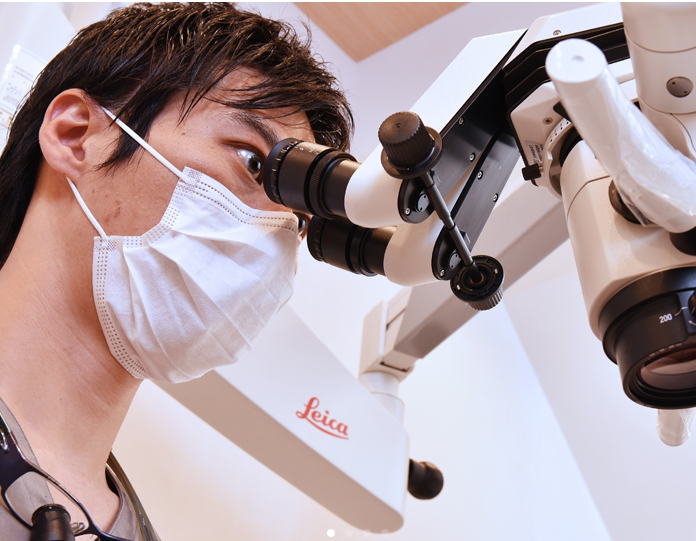 マイクロスコープ(歯科用顕微鏡)を使用した精密な根管治療に定評があり、40年に渡る研鑽で培った知識と技術を活かした診療を行っています。一般治療はもちろん、精密補綴や歯内療法専門医による治療、歯周病再生治療、インプラント治療などの専門性の高い治療にも対応。歯科医師、衛生士、技工士が連携してそれぞれの立場から治療内容をチェックし合う体制で、患者様に安心できる治療環境を提供しています。