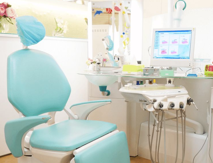 院内は十分な広さを確保した診療スペースで、ベビーカーを置いたまま治療を受けられるほか、診療室内にキッズルームを設置。お子様とお母様が互いの顔を見られる安心な環境を実現しています。また、従来のレントゲンと比べて被ばく量を大幅に抑えたデジタルレントゲンや、ヨーロッパ基準に準拠した滅菌器を導入。待合室には大型モニターを設置し、アニメやお笑い番組を放映してリラックスして待ち時間を過ごせる工夫もみられます。