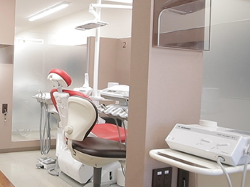 院内は個室や区分けされた半個室型の診療室を完備し、リラックスできる空間づくりにこだわっています。最新のCT装置やレーザー治療器、歯科用自動麻酔器などの設備も整えており、より快適な治療環境を実現。歯やお口に関するお悩みの際は、気軽に相談できる医院です。