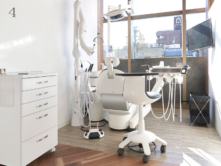 プライバシーに配慮した個室タイプの診療室には、ゆとりある空間でリラックスできる診療台を設置。院内感染対策として使い捨て製品の使用と完全滅菌を徹底し、安心して治療を受けられる環境を整えています。さらに、院内での定期的な勉強会や症例検討会を通じて、スタッフ全員が「もし、患者様が自分の家族だったら」という意識を持って診療にあたり、最新の治療技術と知識の習得に努めています。