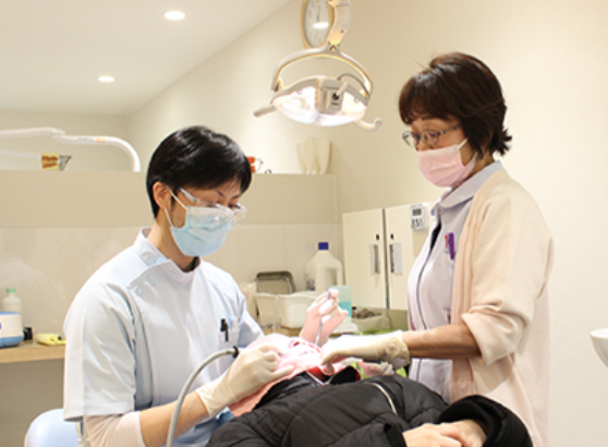 こちらの医院では、保険診療を中心に、なるべく歯を残す治療を心がけています。小児歯科では単なる虫歯治療だけでなく、きれいな永久歯を正しい位置に生やすことを目標とし、歯科医師と資格を持った歯科衛生士による丁寧な診査を実施。また予防歯科では、患者様それぞれの虫歯のリスクを診断し、PMTCやフッ素塗布など、その方に合った予防法を提案しながら、長期的な口腔内の健康維持をサポートしています。