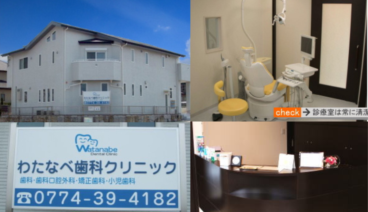 わたなべ歯科クリニックは、祝園駅から木津川台駅下車後、出口1から徒歩18分の場所にあります。幅広い診療科目に対応し、一般歯科・小児歯科・口腔外科・インプラント・審美歯科・ホワイトニング・矯正歯科と、さまざまなニーズに応える歯科医院です。患者様の口腔の健康をトータルでサポートする体制が整っています。