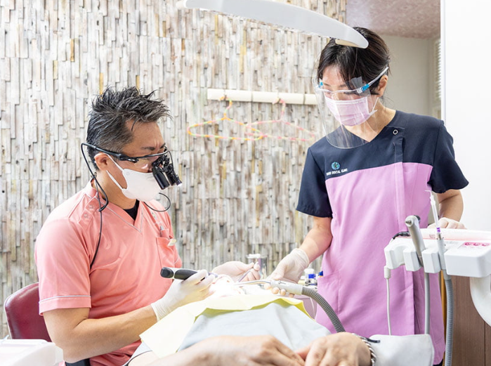 こちらの医院では、インプラント治療や歯周病治療、予防歯科を中心に、お口の健康をトータルにサポートしています。特に、近隣の歯科医院から紹介を受けるほどの専門性を持ち、オールオン4や再生治療など、高度な歯科医療を提供。歯周病治療にも力を入れ、患者様が歯を失わずに済むよう、定期的なメンテナンスと予防を徹底しています。患者様一人ひとりの状態に合わせた治療計画を立案し、わかりやすい説明を大切にしているため、安心して通院できる環境が整っています。