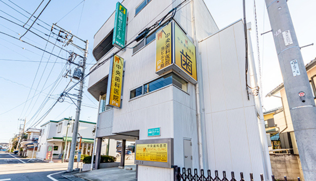 中央歯科医院は、本庄駅南口から徒歩3分の場所にあります。駅から近く通院しやすい立地でありながら、駐車場も6台分完備されているため、お車での来院も安心です。診療科目は、一般歯科をはじめ、根管治療(歯内療法)、小児歯科、インプラント、歯周病治療、義歯(入れ歯)、予防歯科など多岐にわたります。お口の健康をトータルでサポートする診療体制が整っており、幅広い年齢層の患者様に対応しています。