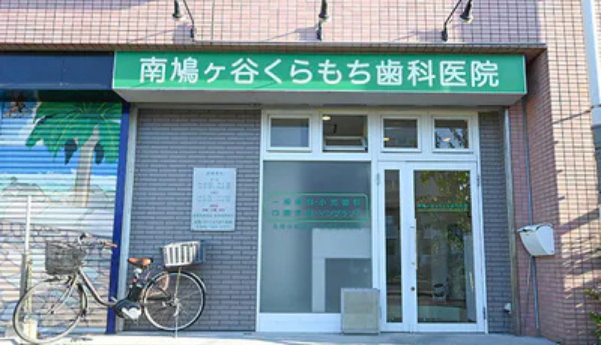 南鳩ヶ谷くらもち歯科医院は、南鳩ヶ谷駅出口1から徒歩4分の場所にあります。駅から近く通いやすい立地に加え、駐車場も2台分完備しており、お車での来院にも対応しています。診療科目は、入れ歯・義歯、虫歯治療、歯周病治療、親知らずの抜歯、小児歯科、噛み合わせ治療、予防診療、歯科検診、インプラント、審美治療、ホワイトニング、顎関節症、ドライマウス、口臭治療、歯科口腔外科など幅広く対応です。患者様一人ひとりのライフスタイルやお悩みに寄り添った診療を行っています。