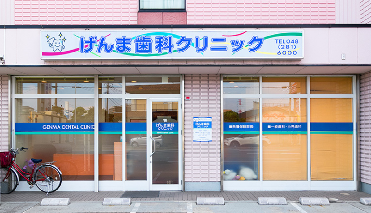 げんま歯科クリニックは、南鳩ヶ谷駅出口2から徒歩1分の便利な場所にあります。駅からすぐの立地に加え、駐車場も完備されているため、お車での来院も可能です。診療科目は、一般歯科、小児歯科、審美治療、歯周病治療、予防治療、入れ歯、矯正治療、インプラント治療など幅広く対応しており、患者様のさまざまなお口の悩みに応えています。