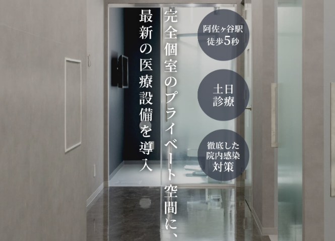 杉並区の阿佐ヶ谷にある、アートクリニック阿佐ヶ谷は、東京メトロ丸の内線の南阿佐ヶ谷駅から徒歩3分、さらにJR中央線の阿佐ヶ谷駅からも5分という好立地にあります。また、休診日は金曜日・祝祭日のみで土日も診療が可能なため平日お忙しい方に嬉しいポイントです。