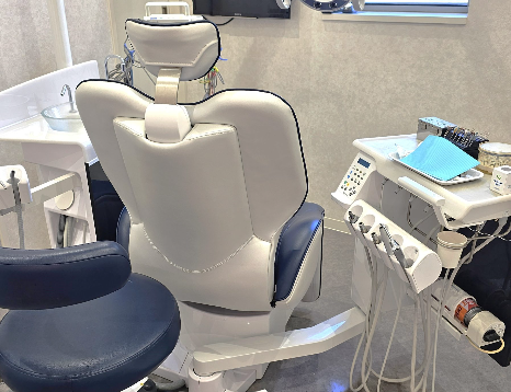 院内はバリアフリー設計となっており、車椅子やベビーカーの方も安心して通院可能。土足OKのため、快適に診療を受けられます。診療室はプライバシーに配慮しパーティションで区切られており、インプラントや審美歯科治療に対応する完全個室も完備されています。