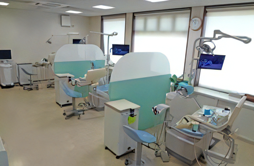 診療室は半個室タイプを採用し、閉塞感を抑えつつもプライバシーを確保した空間で落ち着いて治療を受けられます。また、予防歯科専用の診療室を設置し、個々に適した予防プログラムを提供しています。 さらに、院内にはデジタルレントゲンを導入し、患者様の負担軽減に配慮した設備を整えています。