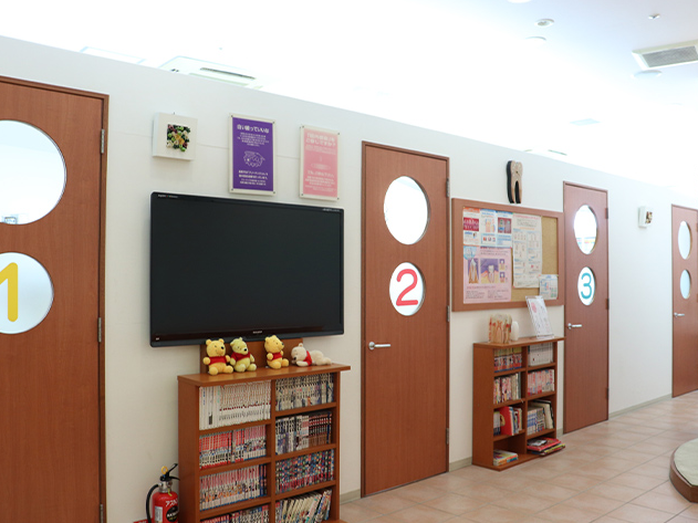 院内はバリアフリー設計で、車椅子の方やお子様連れの方も安心して通院できるよう広い診療スペースを確保。待合室には紫外線殺菌済みのスリッパを用意し、清潔な環境を維持しています。キッズスペースにはおもちゃやDVDを備え、お子様が退屈せずに待てる工夫もされているようです。