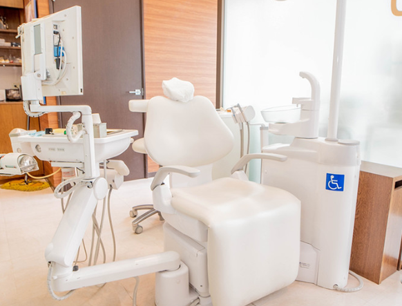 院内は、白や暖色系を基調とした落ち着いた空間で、患者様がリラックスできるよう工夫されています。診療室はパーテーションで仕切られ、プライバシーにも配慮。エレベーター完備のため、車椅子やベビーカーを利用される方、足腰に不安のある方も安心して通院できるでしょう。お買い物と歯医者さんへの通院をまとめて済ませたいという方は、ぜひこちらの医院までご予約ください。