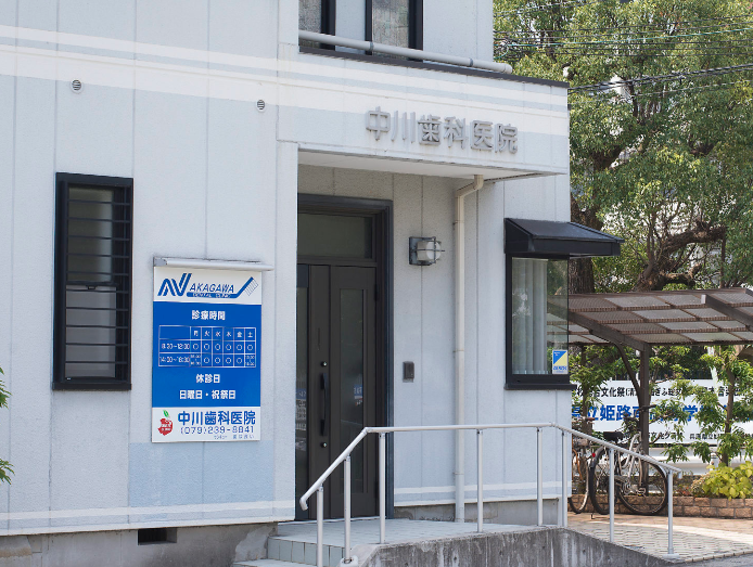 中川歯科医院は、JRはりま勝原駅 南口 から徒歩18分、姫路南高校の正門前に医院を構えています。