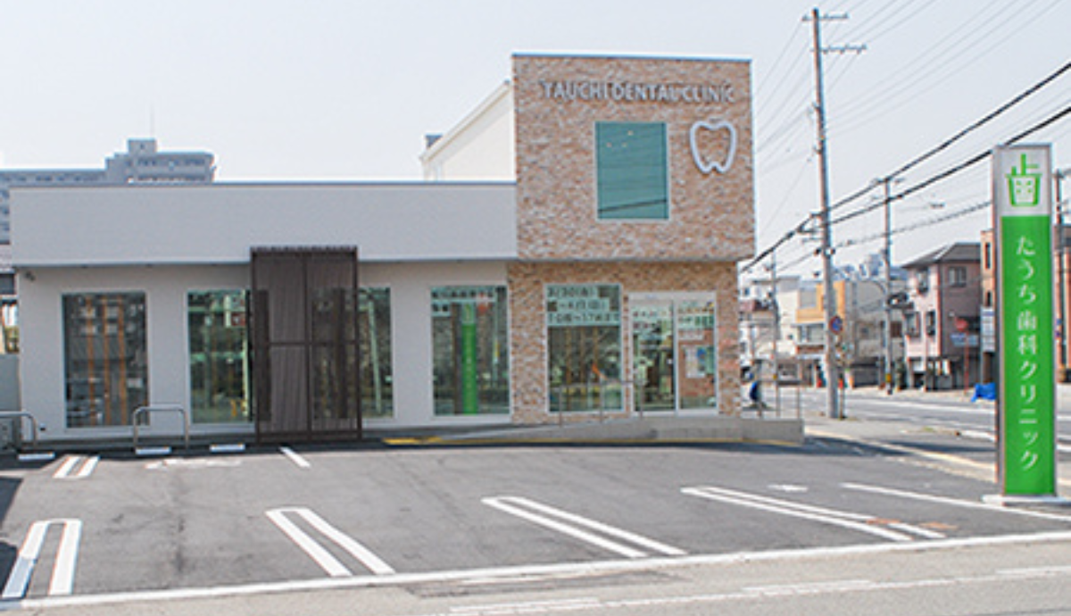 たうち歯科クリニックは、京口駅出口2から徒歩7分の場所にあります。駐車場は7台分を完備しており、お車での通院にも便利です。診療科目は、一般歯科をはじめ、義歯(入れ歯)、インプラント、咬合治療(噛み合わせの治療)、顎関節症治療など、多岐にわたる専門的な診療を提供しています。