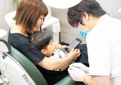 院内は、安心して治療を受けられる環境が整っています。診療室は全室個室でプライバシーに配慮し、モニターを活用した「ビジュアルマックス」により、治療内容を分かりやすく説明。特診室も完備し、長時間の治療や外科処置に対応しています。院内の衛生管理にも力を入れ、治療器具は滅菌処理を徹底し、紙コップや紙エプロンは使い捨てを使用しているとのことです。