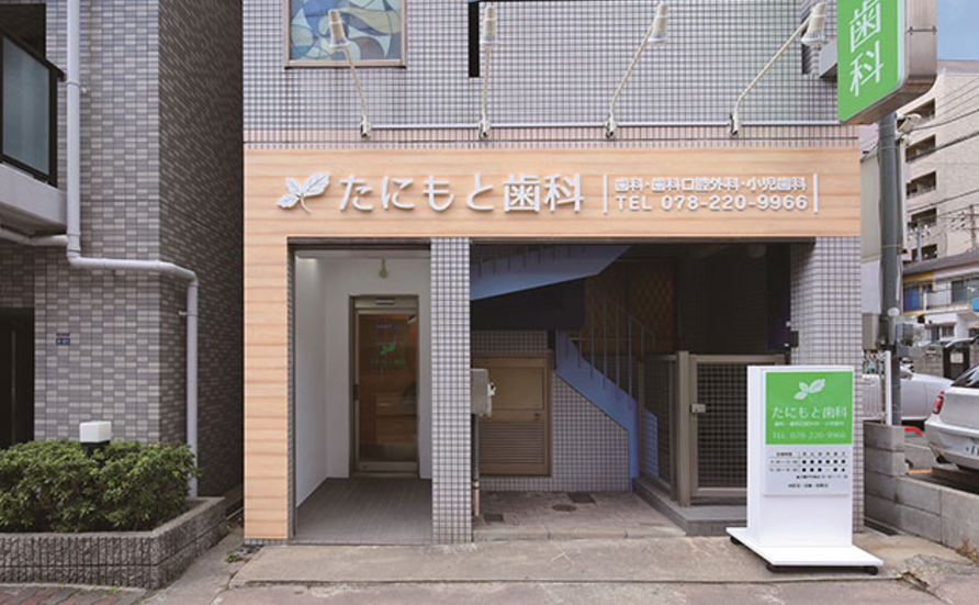 兵庫県神戸市灘区友田町にあるたにもと歯科は、阪神本線新在家駅から徒歩2分、JR神戸線六甲道駅から徒歩6分という利便性の高い立地にあります。通勤や通学の合間にも通いやすく、車での来院にも対応しています。地域の皆様が安心して通院できる環境づくりを重視し、小さなお子様からご高齢の方まで幅広い世代に対応しています。