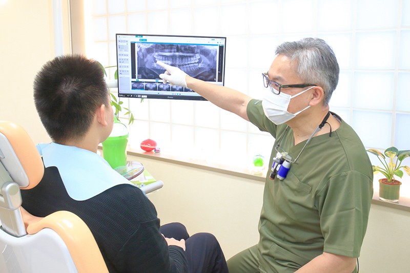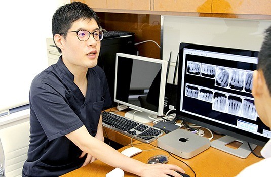 歯科医師は院長1名のみのため、診療ごとに担当が変わる心配がなく、信頼関係を築きながら治療を進められます。10年後や20年後を見据え、一生おいしく食事ができることを目標に、虫歯や歯周病の予防だけでなく咬み合わせの治療にも注力しているのが特徴です。